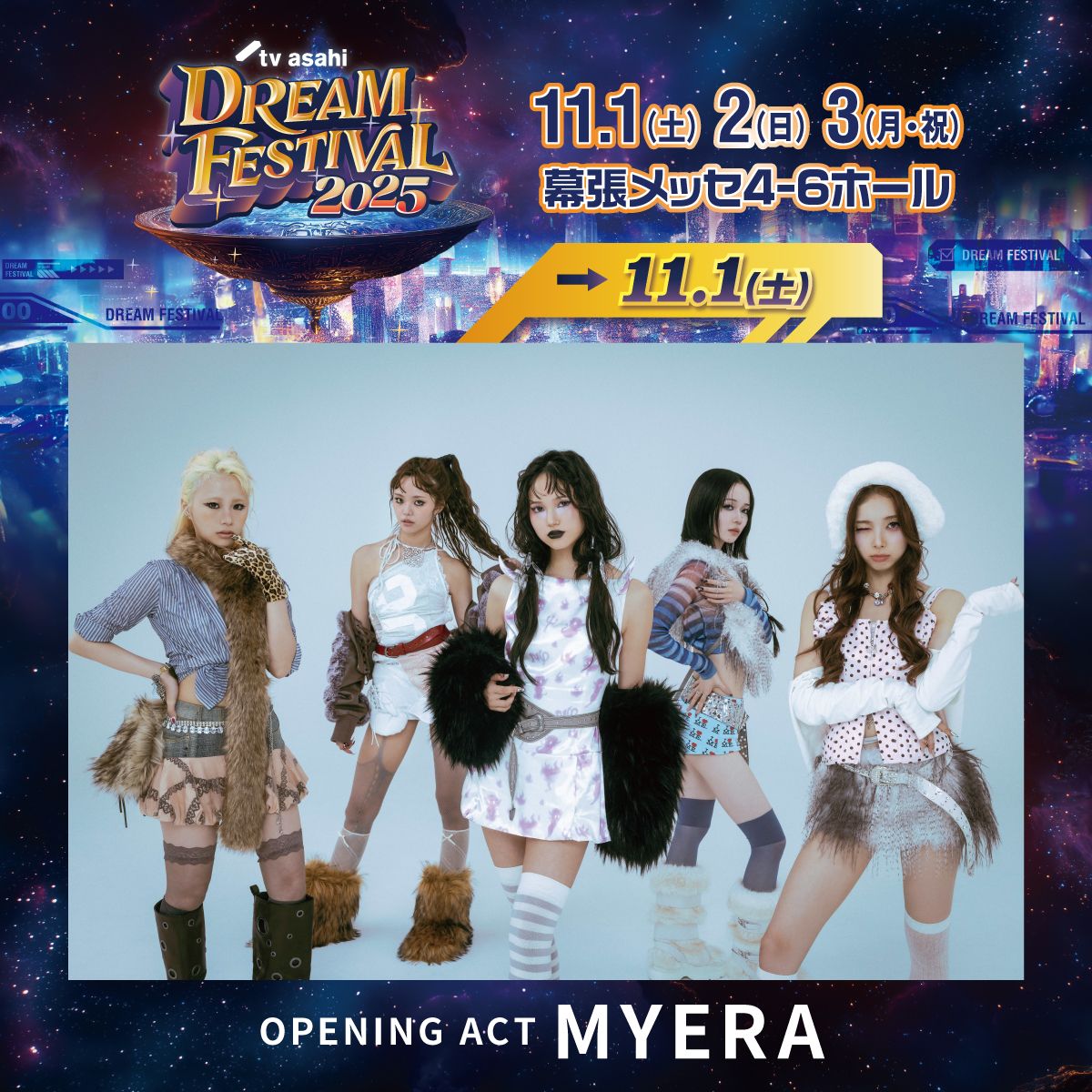 MYERAが出演する『テレビ朝日ドリームフェスティバル 2025』の模様がテレ朝チャンネル1にて生中継が決定しました!
